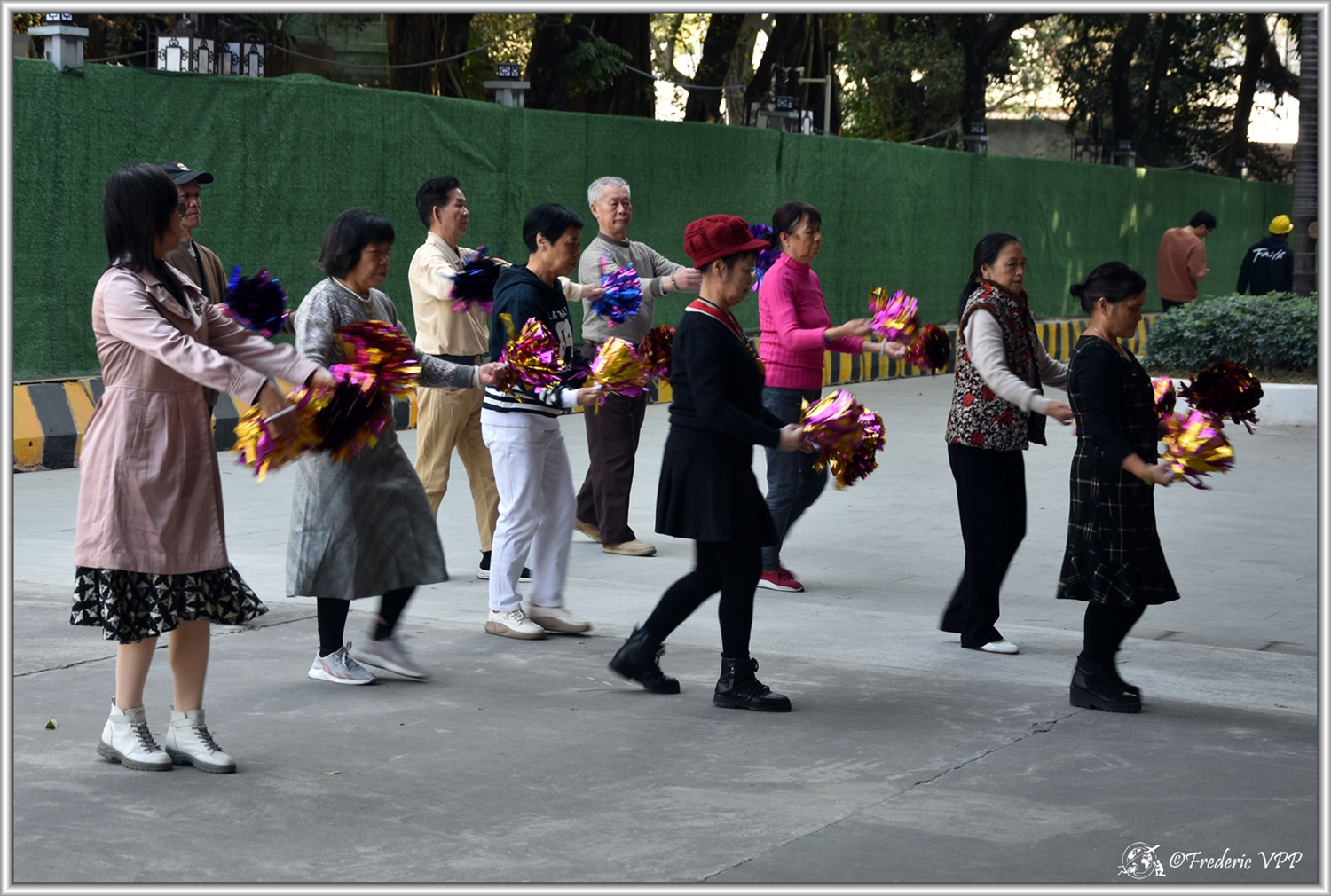Des photos de travailleurs, de personnes faisant des activités extérieures comme le Tai-chi-chuan ou la danse...