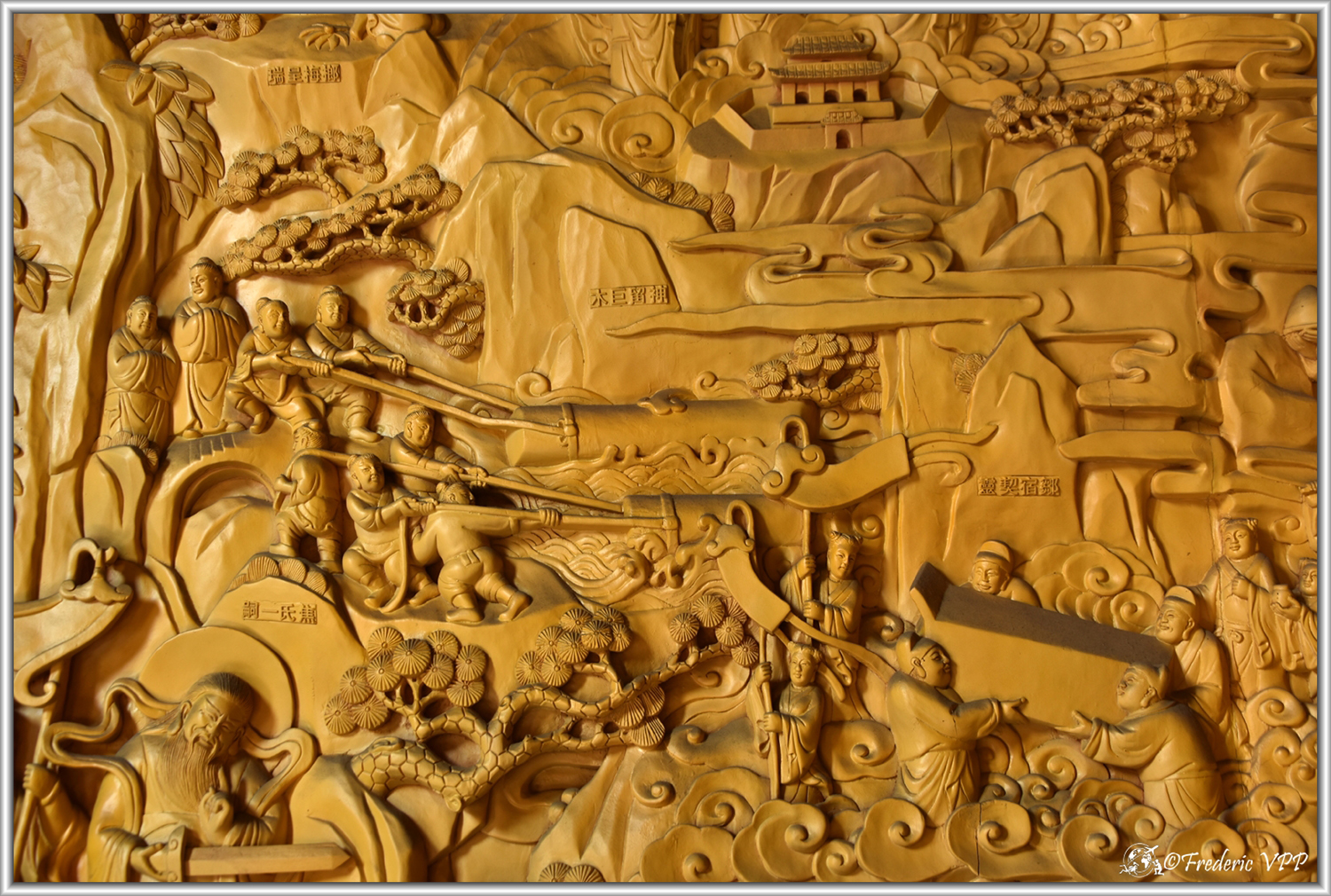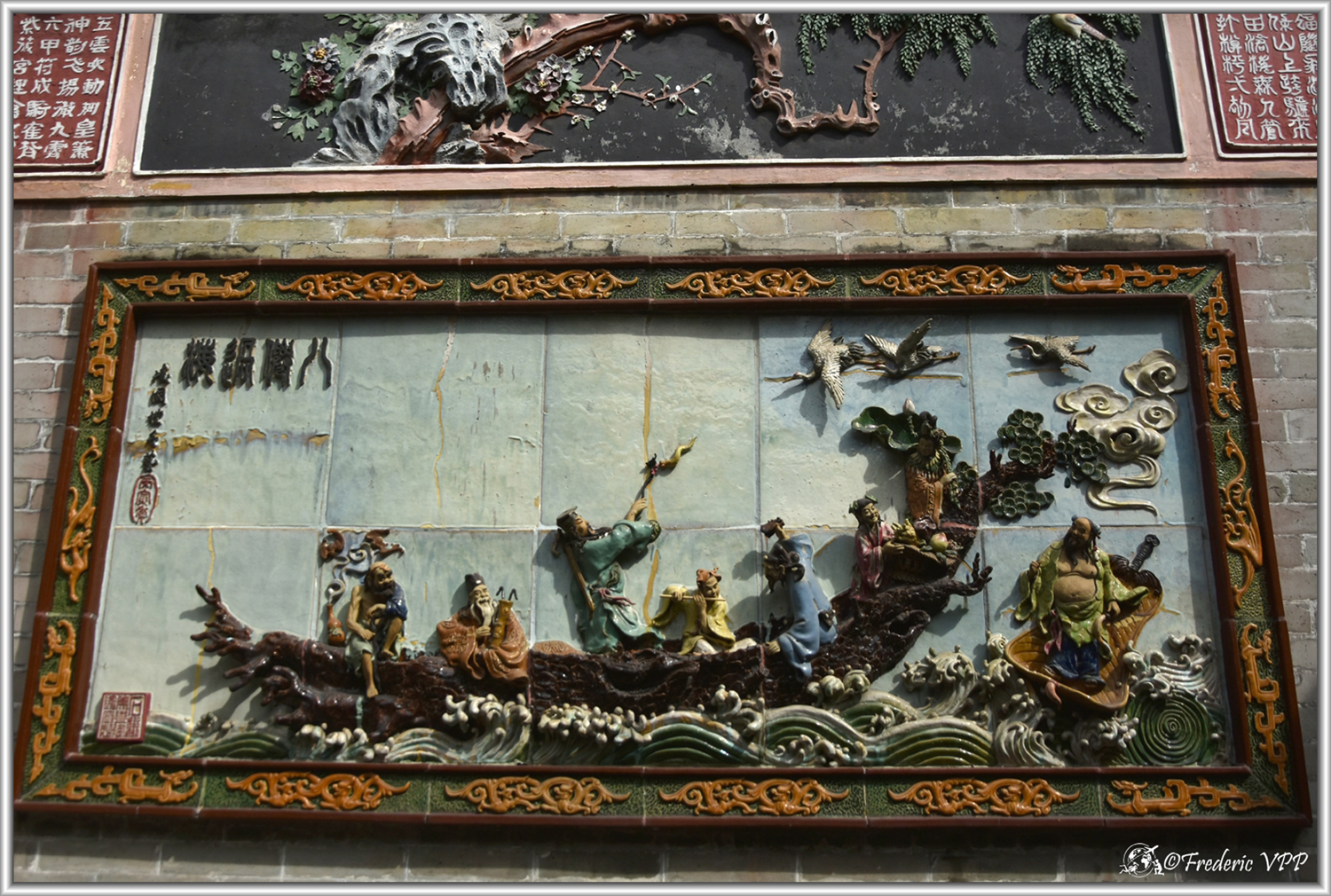 This mural is located in the Ancestral Temple in Foshan. The tailor is Master Chen Zeming, a fifth-generation descendant of the Muya family in Shanning, Guangdong.