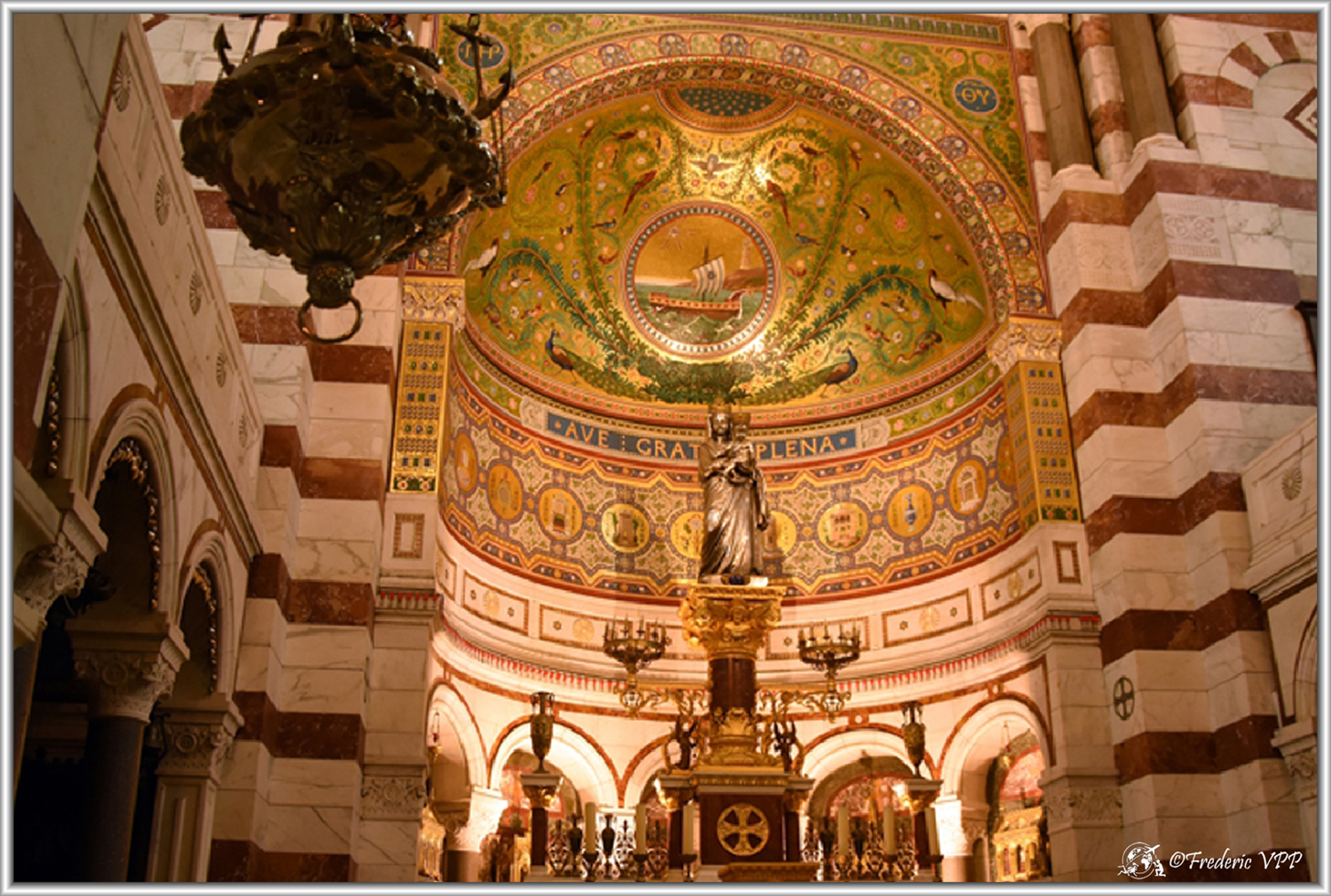 Afterwards, I'll take you to Marseille, a city of many colors and many nationalities, the gateway to trade in the Mediterranean Sea and then to the French colonies. The Château d'If, emblematic place of Alexandre Dumas' novel "The Count of Monté-Cristo". She served many years as a prison. If you go there, listen, and lend an ear, you will perhaps hear Abbé Faria discussing with Edmond Dantès. I will not forget by Notre Dame de la Garde dominating Marseille, patron saint of sailors. Nicknamed "the Good Mother" ("La Boueno Maire" in Provençal), it is a basilica of the Roman Catholic Church. It is erected on a peak 149 meters above sea level and dominates the harbor of Marseille. She is the patron saint of fishermen.