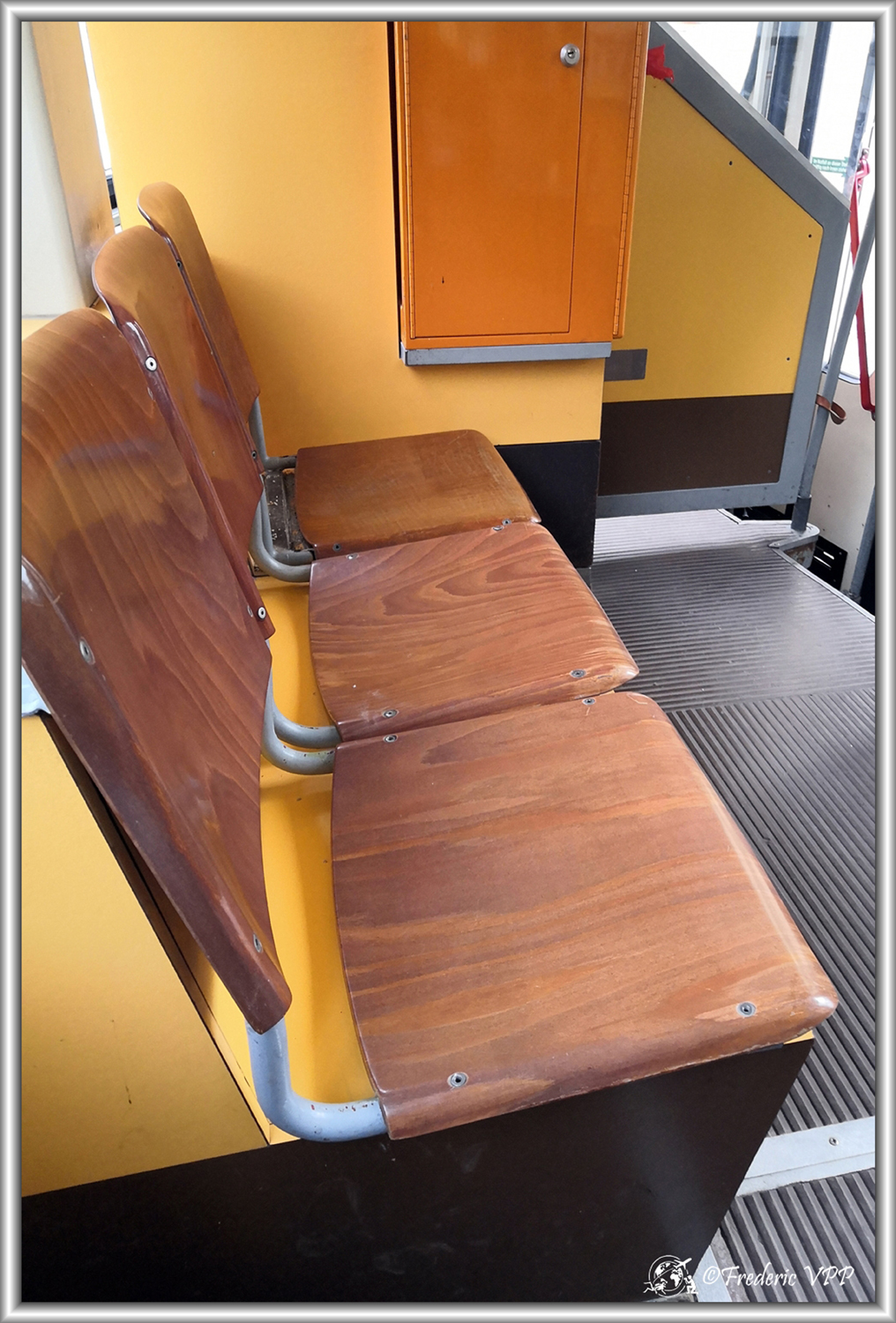 Il y a aussi des photos de sièges en bois dans le tramway et vous allez penser pourquoi ? Tout simplement car il y un radiateur sous les sièges en bois. Cela surprend au début mais c'est très agréable.