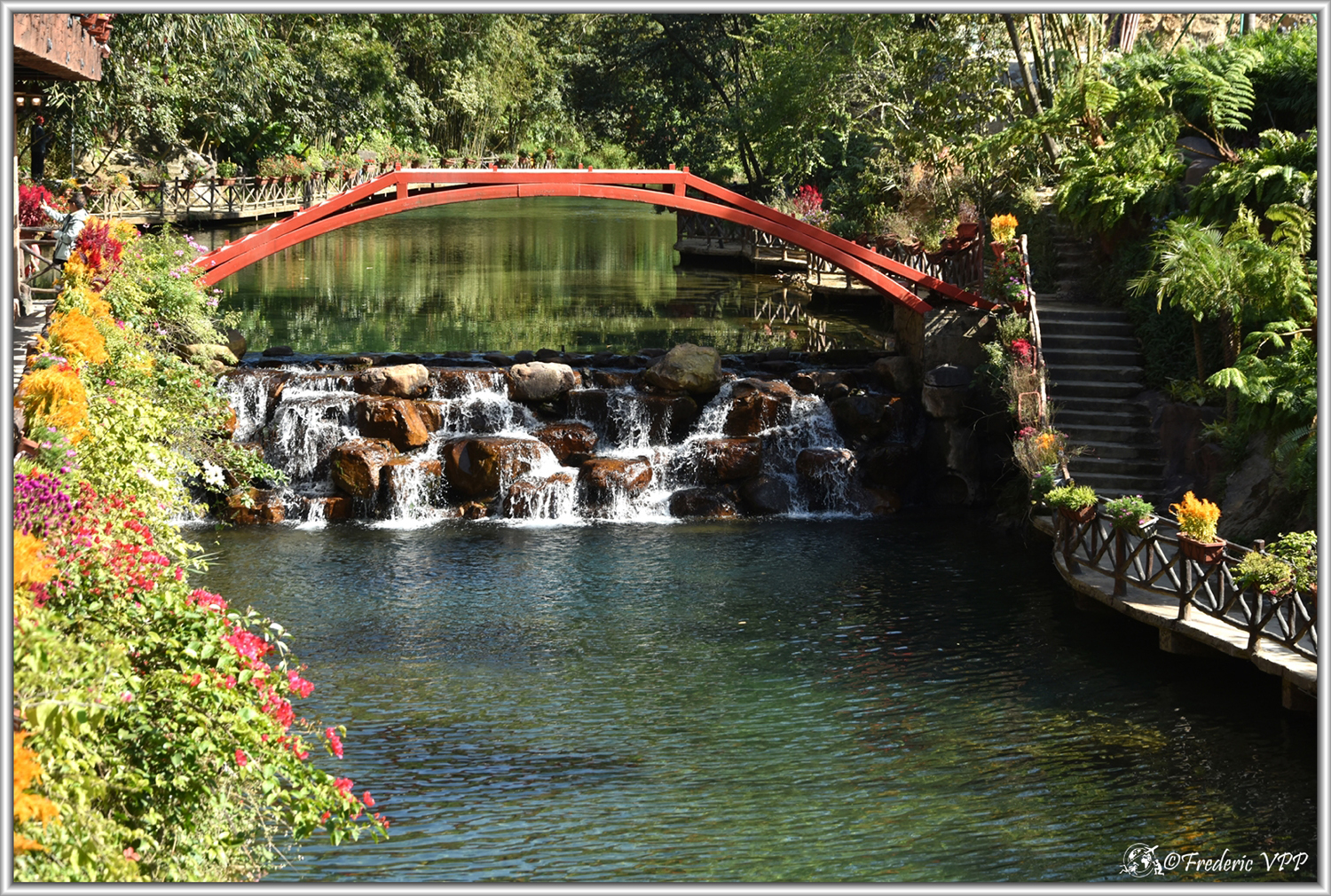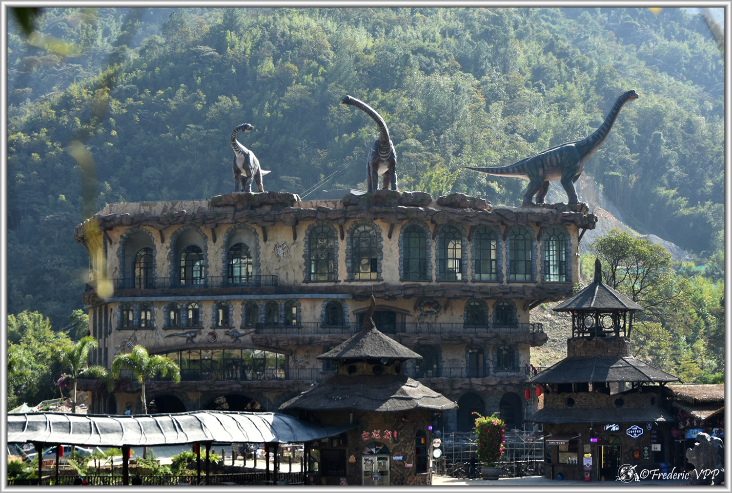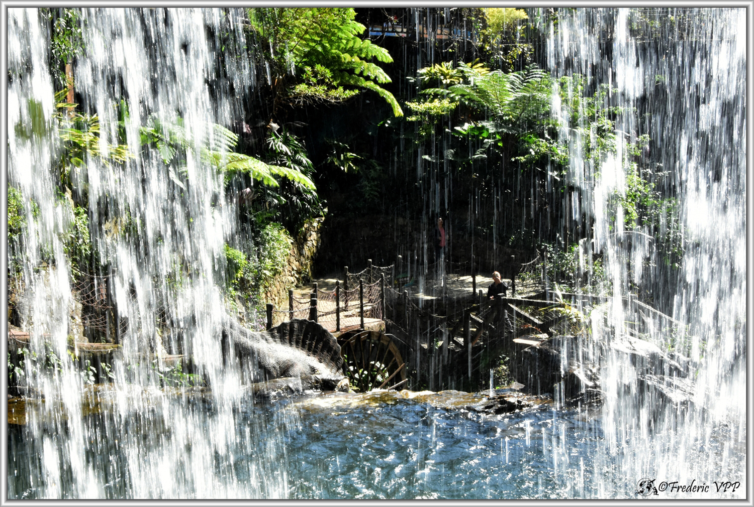 As we go up to the platform, we come across life-size dinosaurs, frozen in frightening or amusing poses, as if prehistory were reborn before our eyes. The children are ecstatic, but even the adults can't help but smile. And behind these frozen creatures, the landscape opens intermittently to sparkling waterfalls, which escape from the vertiginous cliffs.